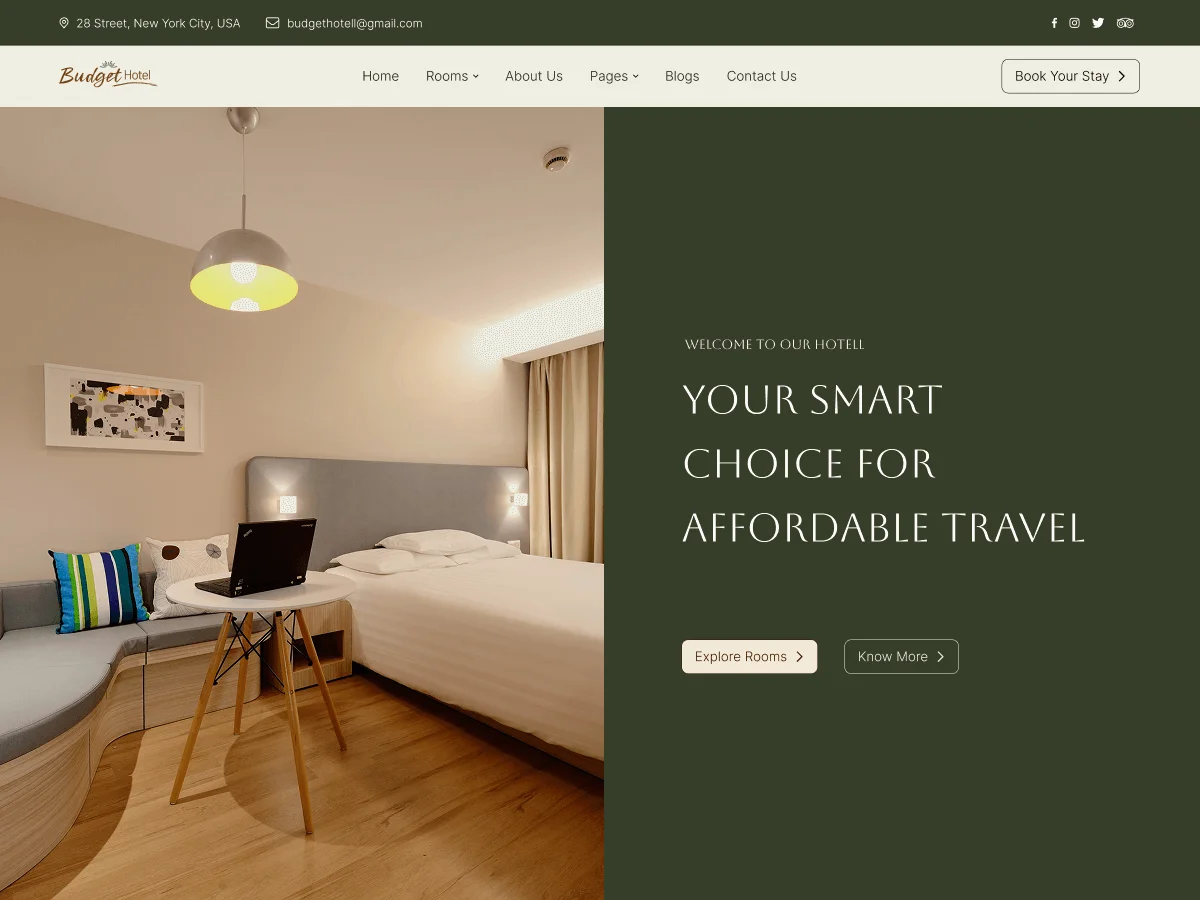 Budget Hotel — это бесплатная дочерняя тема WordPress для отелей, курортов и гостевых домов. Её лаконичный дизайн позволяет демонстрировать номера и услуги для привлечения гостей. Тема содержит все необходимые функции для создания профессионального сайта. Это решение объединяет элегантность и функциональность гостиничного бизнеса.