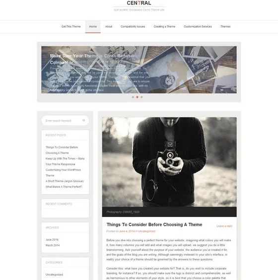 Central - Central — классическая блоговая тема с минималистичным дизайном и утончёнными линиями