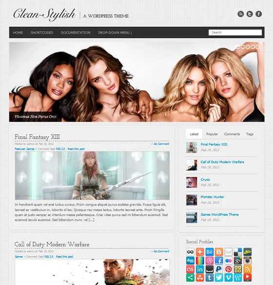 Clean-Stylish — это универсальный шаблон с классическим дизайном и гибкой структурой. Он позволяет выбрать предпочтительное расположение боковой панели или полностью ее скрыть. Шаблон включает встроенный слайдер, панель с популярными записями и комплект PSD-файлов. Данное решение предлагает все необходимые инструменты для создания функционального сайта