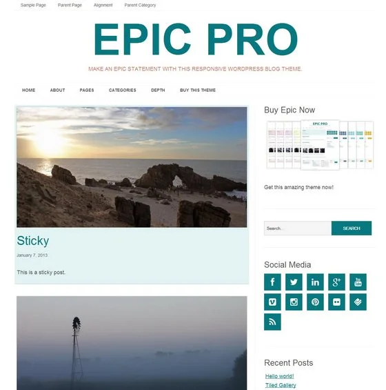 Epic - минималистичный шаблон с простыми настройками и выбором цветовых схем для общетематических сайтов