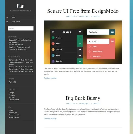 Flat - Flat — классический блоговый шаблон с чистой структурой и динамическим фоном