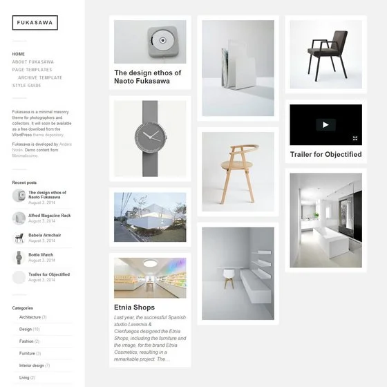 Fukasawa - Fukasawa — минималистичный шаблон в светлых тонах, идеально подходящий для портфолио и фото-блогов