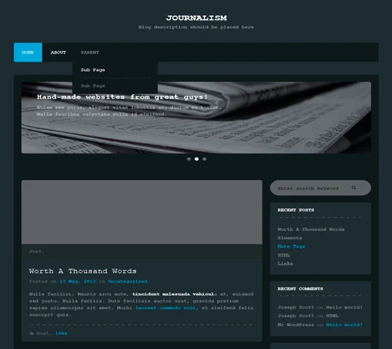 Journalism - Journalism — простой шаблон в тёмных тонах со встроенным слайдером для сайтов любой тематики