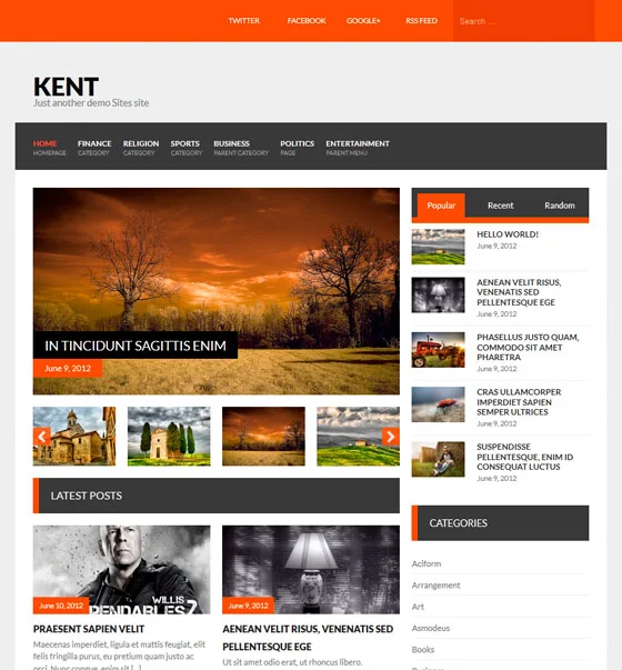 Kent - Тема Kent для WordPress — универсальный шаблон со встроенным слайдером и удобной боковой панелью