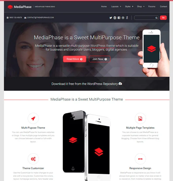 Mediaphase — профессиональный шаблон для бизнес-сайтов. Адаптивный дизайн с безупречной версткой. Гибкие настройки под корпоративный стиль. Поддержка WooCommerce и деловых виджетов.