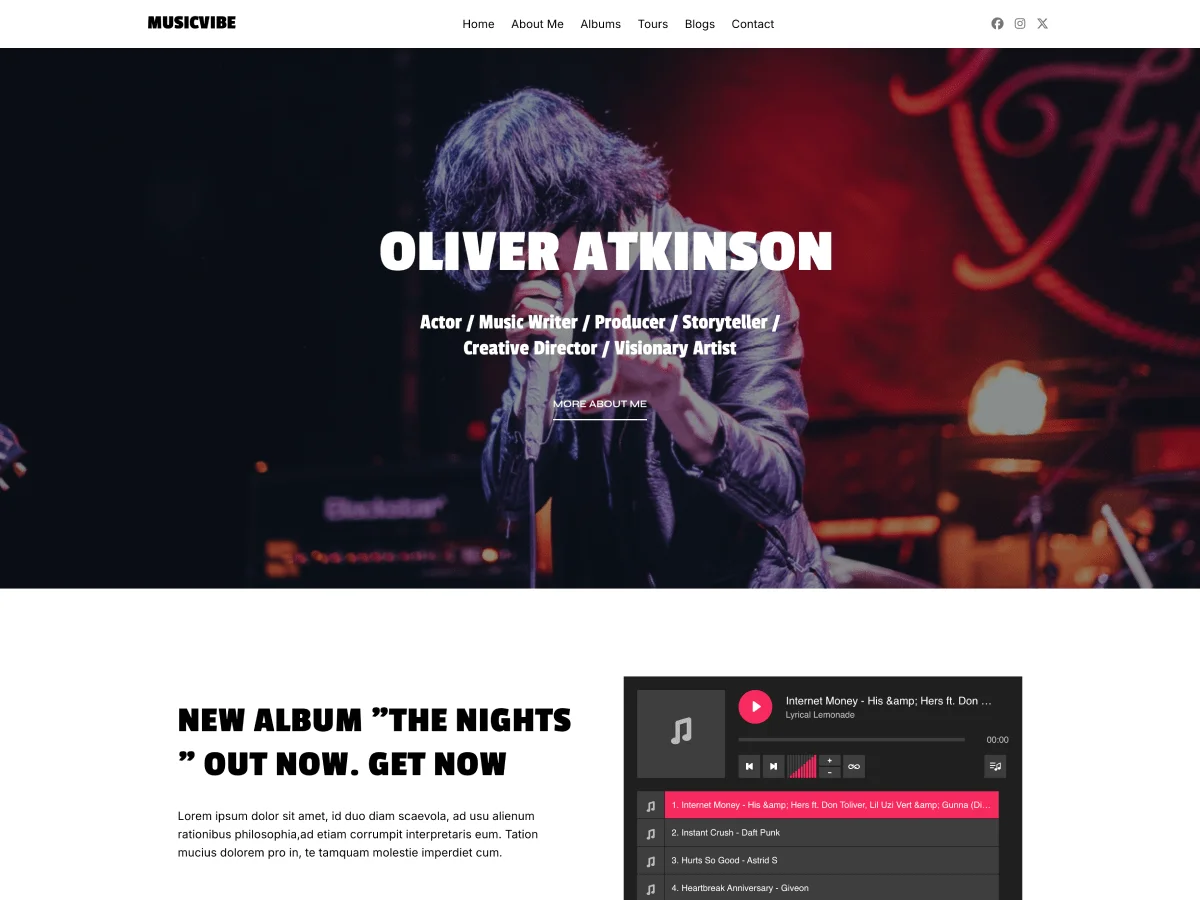 MusicVibe - MusicVibe — это профессиональная тема WordPress для музыкантов, диджеев и музыкальных групп