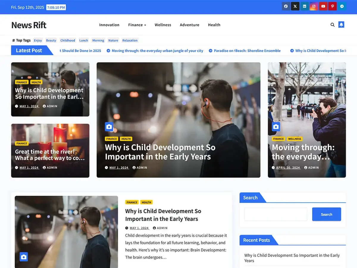 News Rift - News Rift — это быстрая и современная тема WordPress, созданная для новостных порталов, журналов