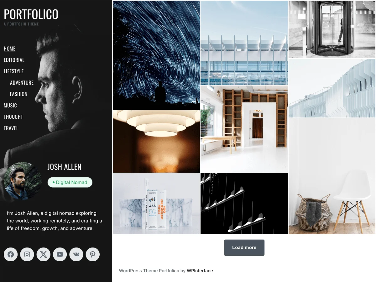 Portfolico — это универсальная тема WordPress для создания персонального портфолио и резюме. Её дизайн эффективно представляет навыки специалистов от разработчиков до дизайнеров и маркетологов. Тема предлагает стильные инструменты для демонстрации профессиональных достижений и проектов. Это решение помогает создать запоминающееся презентационное пространство для карьерного роста.