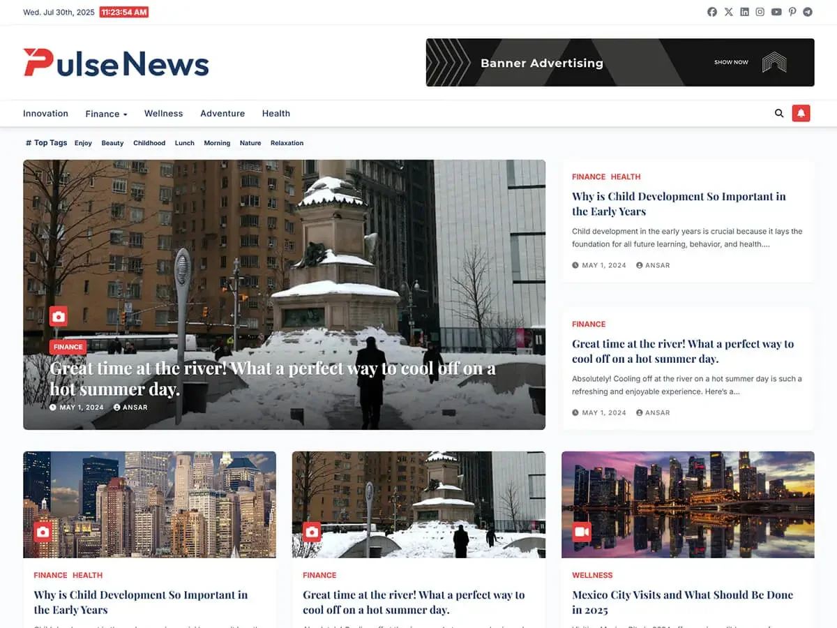 Pulse News — это быстрая тема WordPress для новостных порталов, журналов и персональных блогов. Её дизайн полностью построен на виджетах для простого управления контентом. Тема поддерживает SEO, WPML, RTL и корректно работает с Gutenberg. Это решение предлагает гибкость и функциональность для медийных ресурсов и творческих проектов.