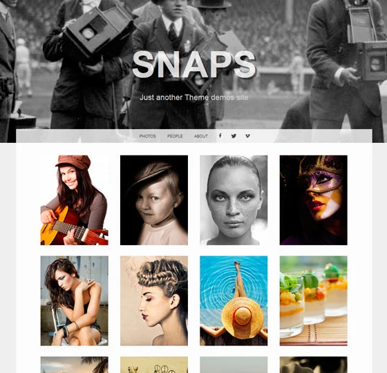 Тема Snaps полностью адаптирована к различным размерам экрана, так что ваш сайт будет работать и правильно отображаться как на iPhone, iPad, так и на других устройствах. Шаблон Snaps идеален для фотографов, создания портфолио или просто любительских фотоальбомов.