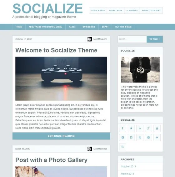 Socialize Lite - Socialize Lite — классический блоговый шаблон с минимальными настройками и выбором цветовых схем