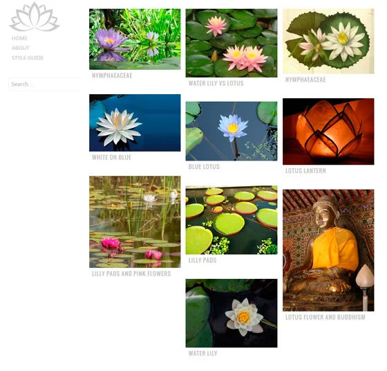 Water Lily — каскадный минималистичный шаблон с адаптивным дизайном для сайтов с фотографиями. Его сетка эффектно демонстрирует изображения, адаптируясь под размер экрана. Простые настройки позволяют легко управлять контентом. Шаблон корректно отображается на всех устройствах.